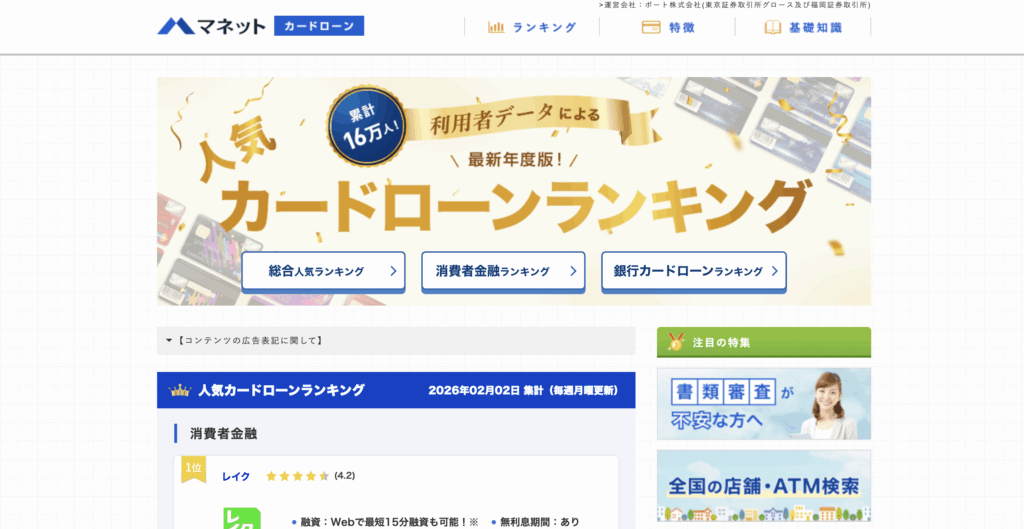 マネットカードローンは、ポート株式会社が2016年から運営しているカードローン比較情報サイトです。